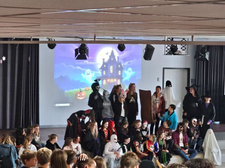 Eine ganz besondere Pause durften heute alle Schüler und Schülerinnen der Realschule Gräfenberg erleben: Bei Musik und gruseligen Verkleidungen fand eine außergewöhnliche „Halloween-Pause“ am Tag vor den Herbstferien statt, die von der SMV zusammen mit den Verbindungslehrkräften Frau Hahn und Herrn Windisch organisiert wurde. Außerdem gab es einen Kostümwettbewerb, bei dem die besten schaurigen Verkleidungen prämiert wurden.