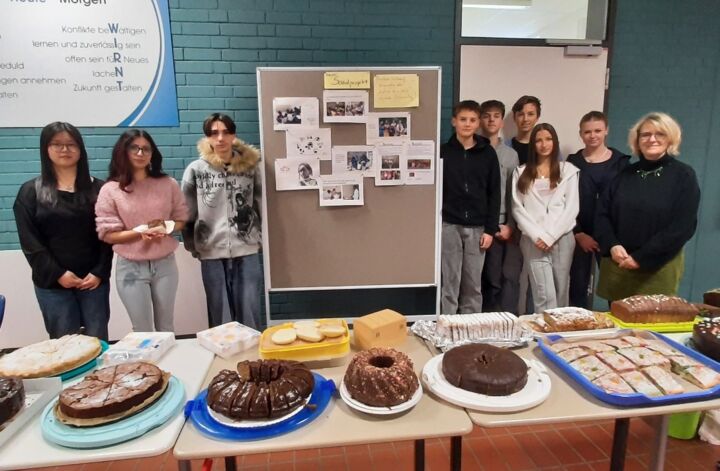 Am Donnerstag, den 27.11.2025, fand eine Spendenaktion für unser Sozialprojekt „Let me be a child“ statt. 33 freundliche Eltern hatten Kuchen gespendet und die Klassen 9a und 9d beim Kuchenverkauf geholfen! Der Erlös beträgt 445 Euro.